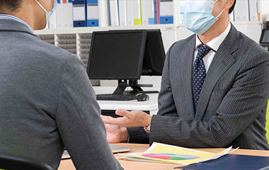 お客様と対面でお話をする場合は、飛沫感染防止のために、マスクを着用致します。お客様にも着用をお願いしております。