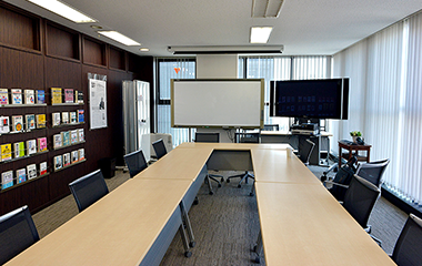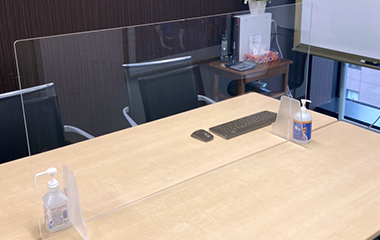 飛沫感染防止のために、面談を行うテーブルには、仕切りパネルを設置しております。